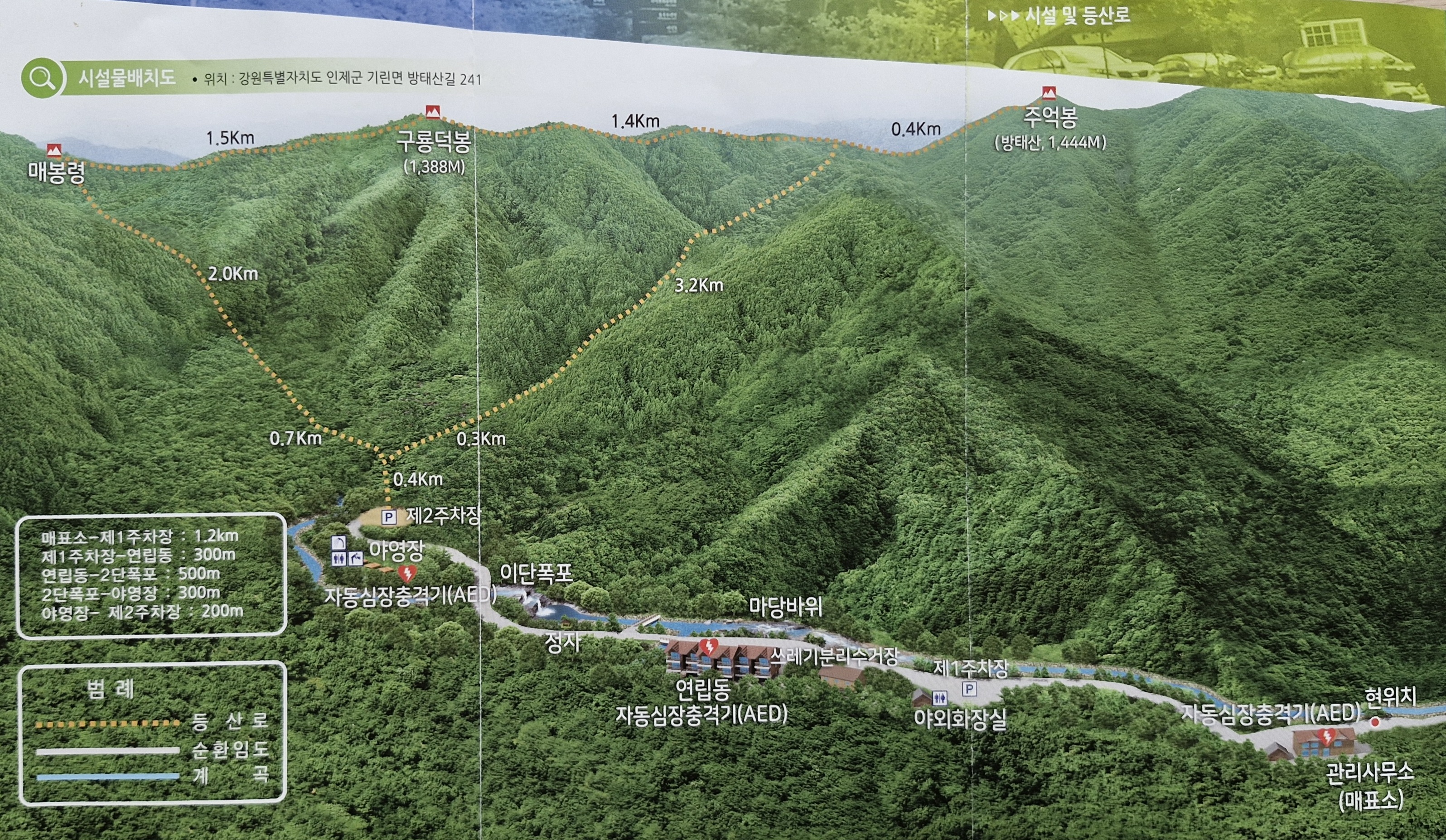 주억봉 등반(왕복 8.6km, 4~5시간)으로 끝내거나 우리처럼 한 바퀴 돌아 나오는(왕복 13.7km, 6시간 안팎) 코스가 일반적이랍니다.