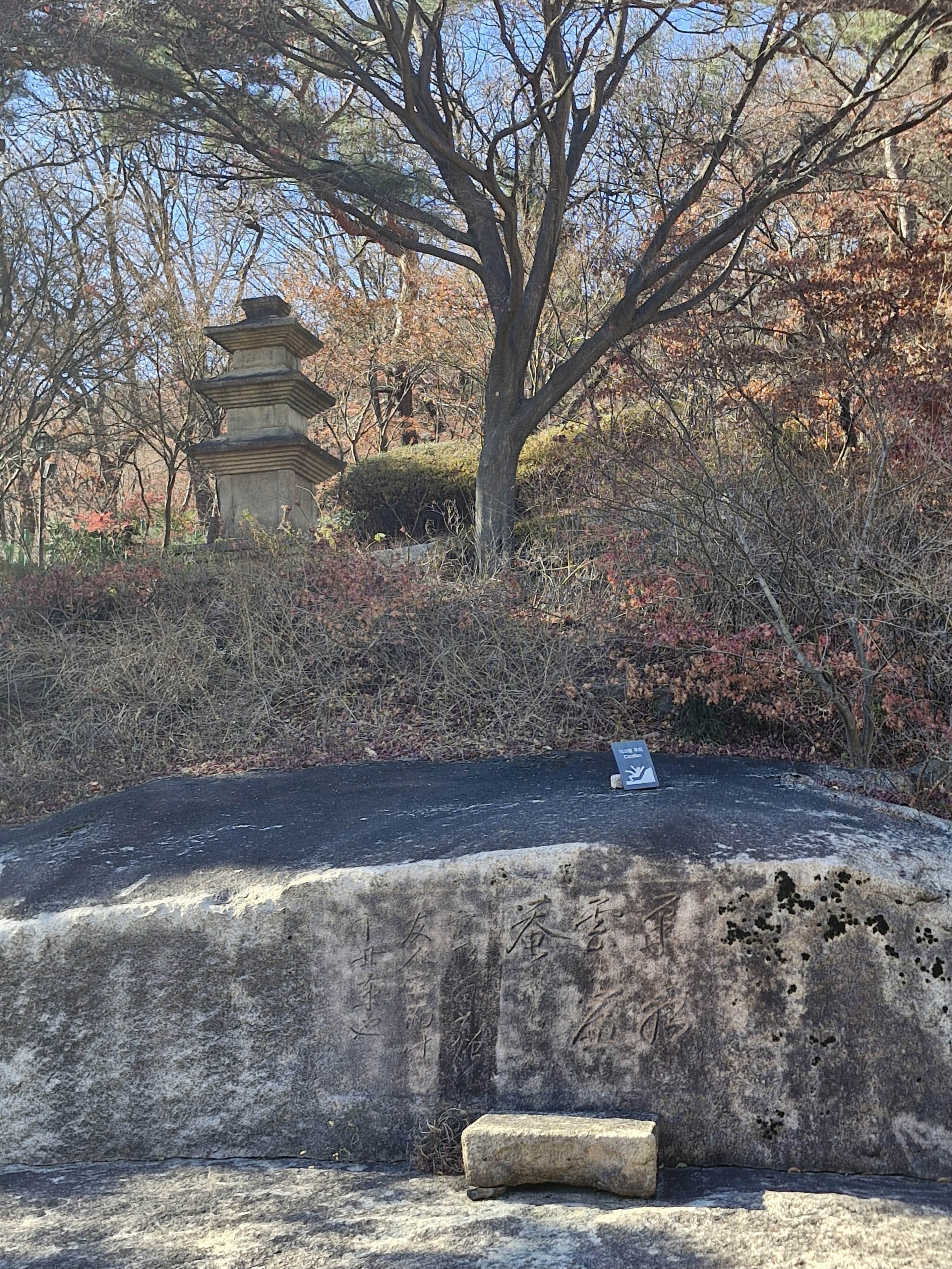 그 위에는 전형적인 통일 신라시대의 석탑, '신라삼층석탑'도 있습니다만 '흐르는 물소리 속에서 단풍을 바라보는 '누각'이라는 고택과 같은 이름의 정자 '석파정(石坡亭)'까지는 오르지 못하고 탑 앞에서