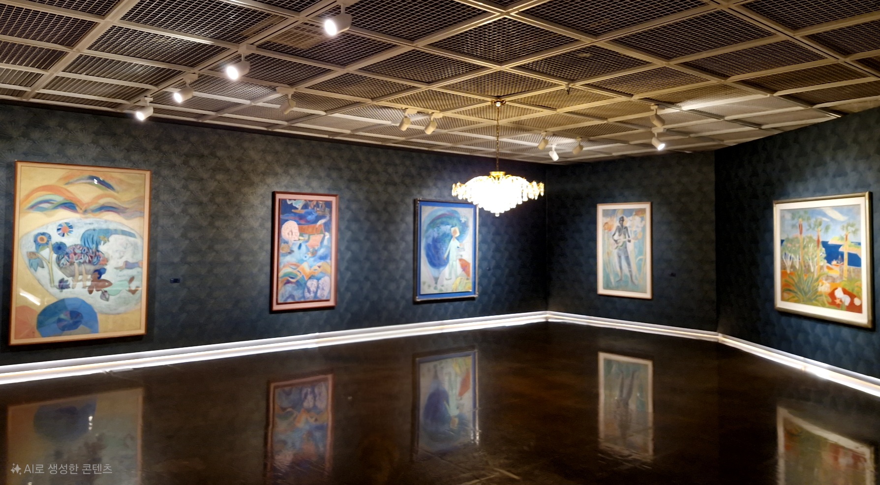 작가의 그림만큼이나 강렬한 색깔의 전시장 안,