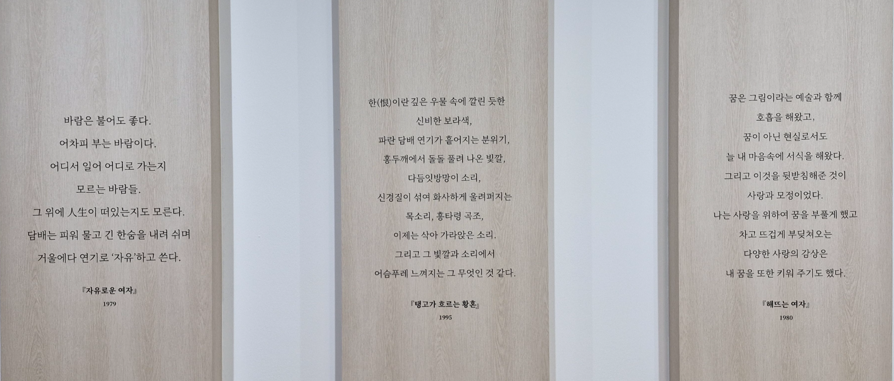 전시장 안에 소개된 작가의 글, 몇 구절을 읽으면서 아름다운 꽃과 고독하고 몽환적인, 그러면서도 강인한 표정의 여성을 주로 그렸던 작가의 내면을 들여다봅니다.