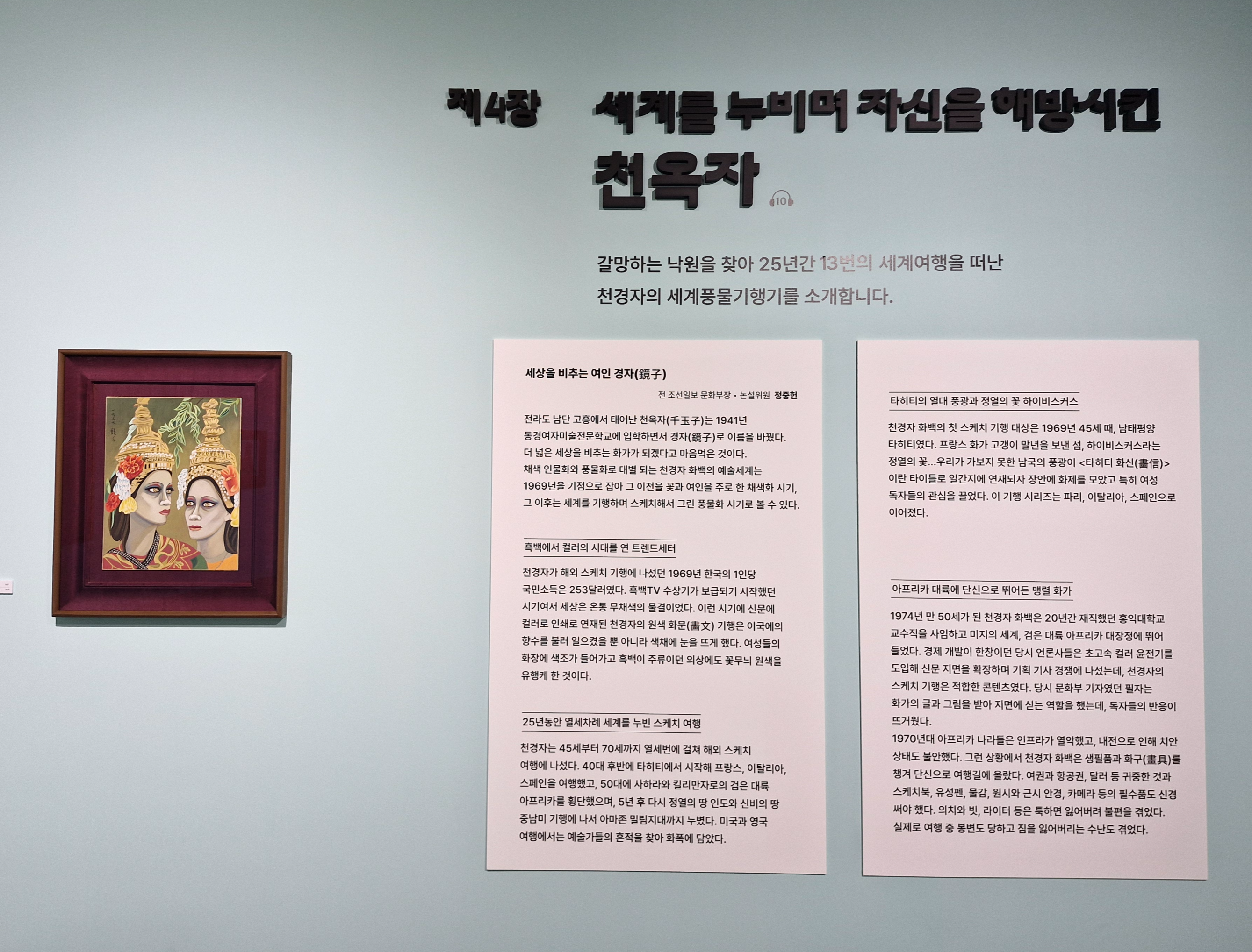 제4장, '세계를 누비며 자신을 해방시켰던 천옥자'에서는 작가가 여행 중에 쓴 글과 그림이 담긴 세계풍물기행을 소개하고 있었지요.