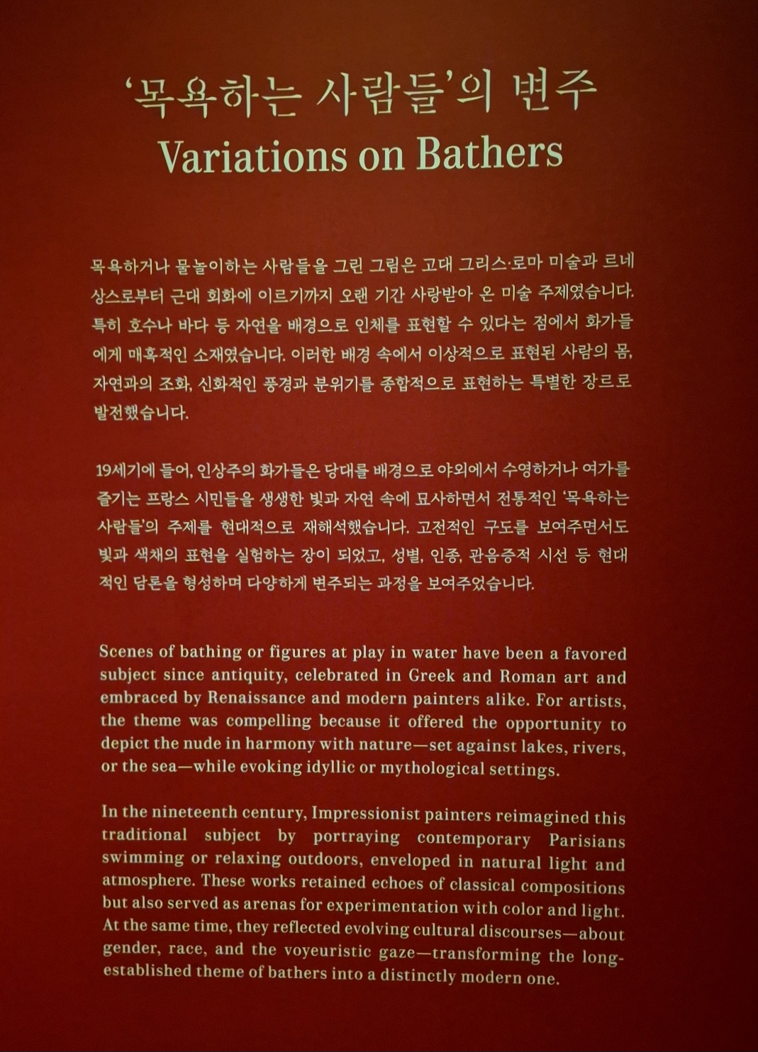 오랜 기간의 그림 주제였던, 목욕을 하거나 물놀이하는 사람들도 이제는 실내가 아닌 자연을 배경으로 하면서